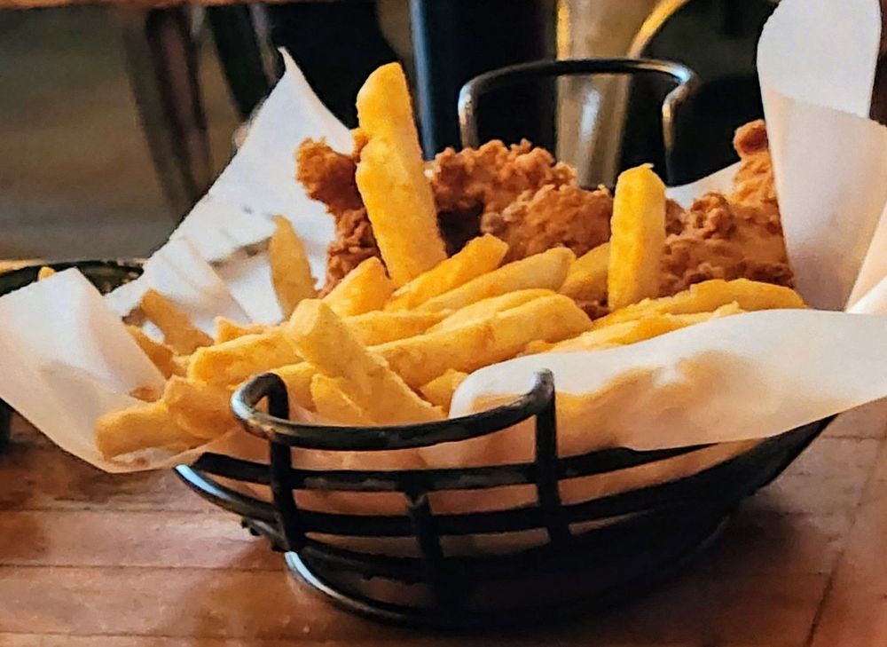 Blackened burger patty topped with Bleu cheese, bacon, lettuce, tomato, and avocado. Served on a toasted brioche bun